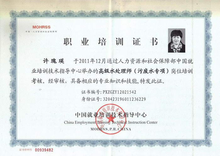 許總高級水處理師證
